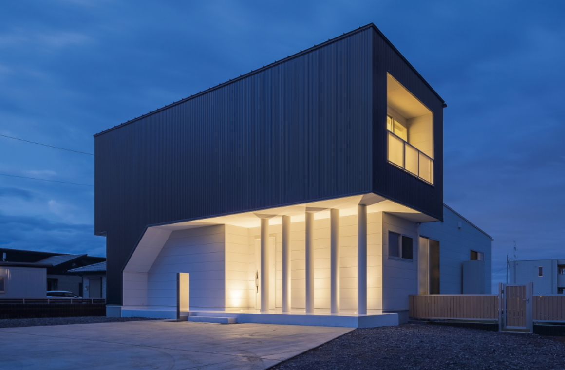 外観は真っ白な漆喰とこげ茶のガルバリウムの一文字張り。シンプルでありながら高級感のある建物です。